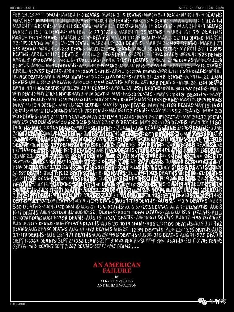 2,美國人應該也在反思。一個世界上最強大的帝國,一個曾讓無數人羨慕的美國,在21世紀發生這么慘烈的死亡,世界第一,真的讓人很無語。《時代》就很痛心疾首,在所有發達國家中,也只有美國情況失控了。